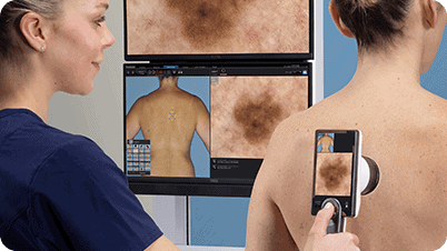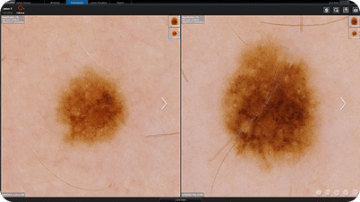 Łatwy nadzór dzięki możliwości bezpośredniego porównywania obrazów ogólnych i dermatoskopowych.
